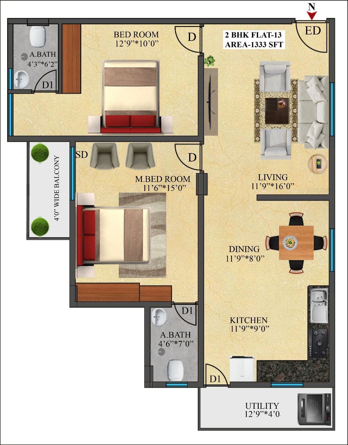 13 | 1333 Sft | North | 2 BHK |