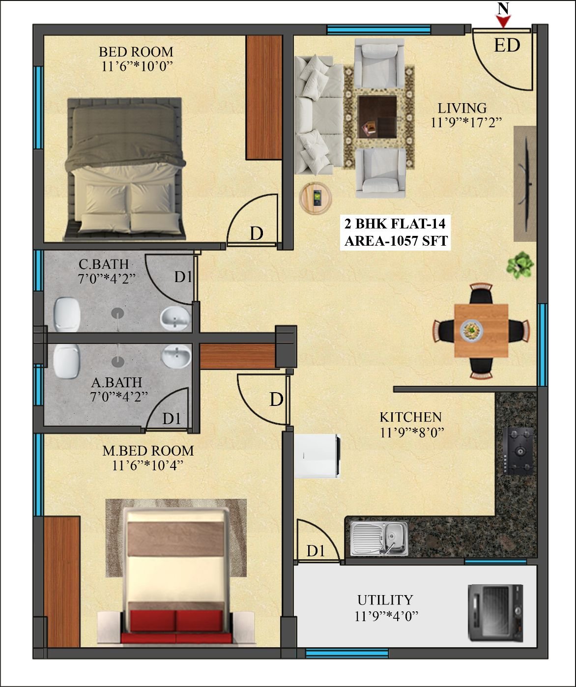 14 | 1057 Sft | North | 2 BHK |