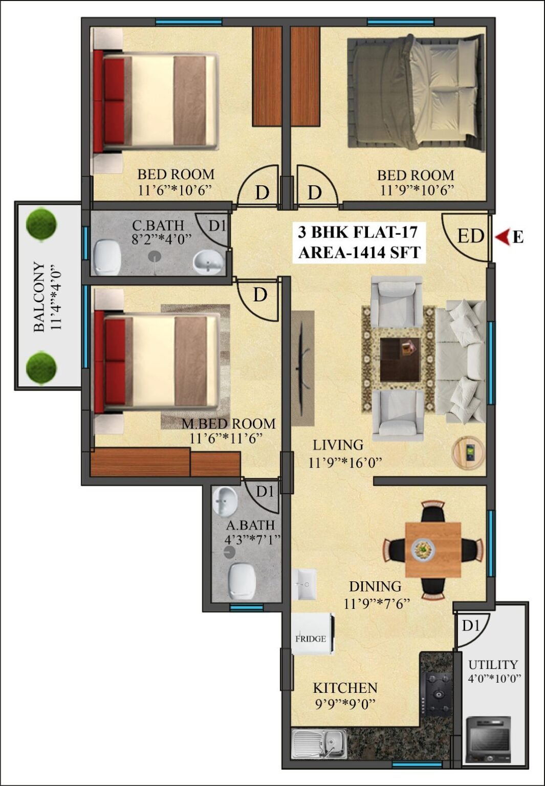 17 | 1414 Sft | East | 3 BHK |