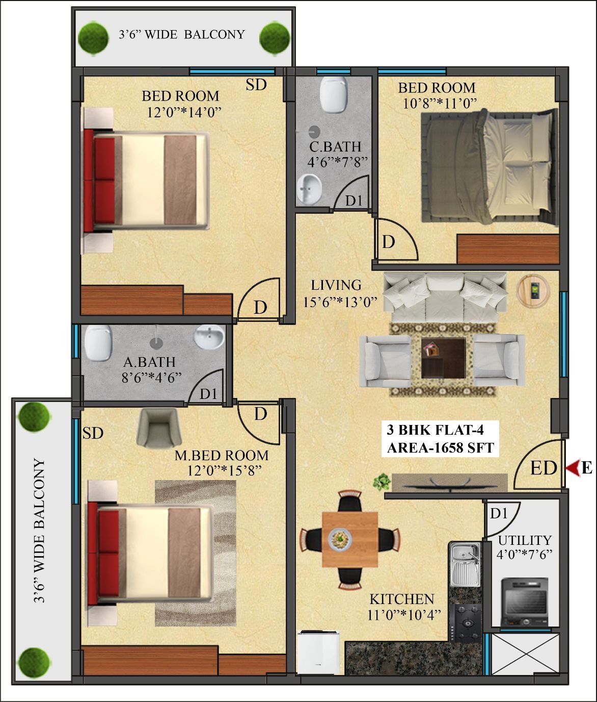 4 | 1658 Sft | East | 3 BHK |