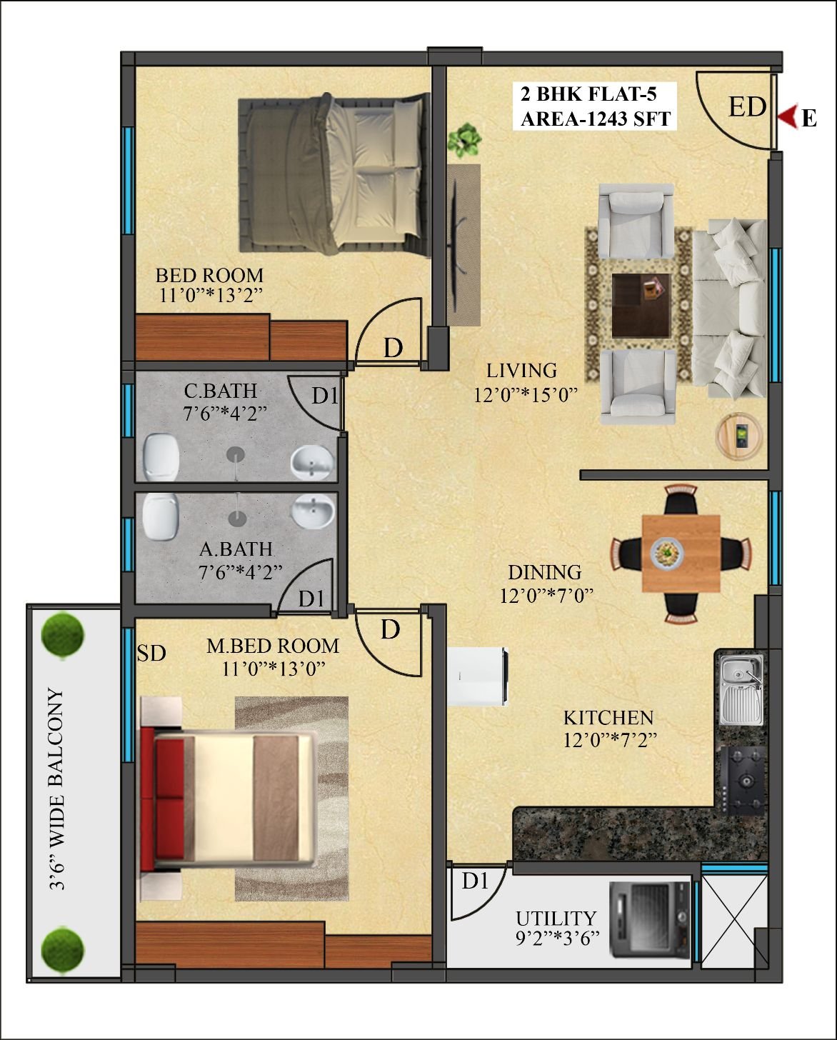 5 | 1243 Sft | East | 2 BHK |