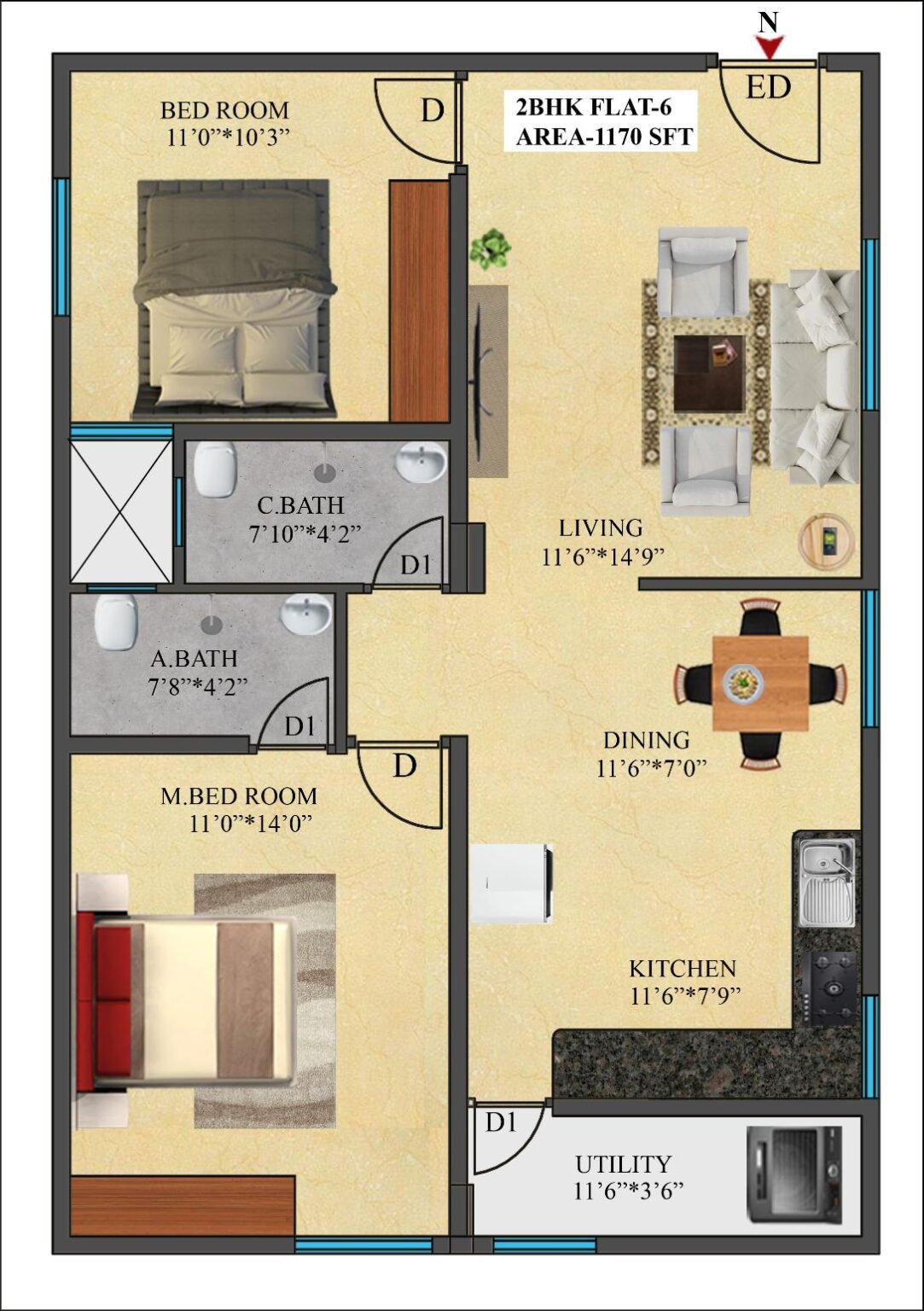 6 | 1170 Sft | North | 2 BHK |