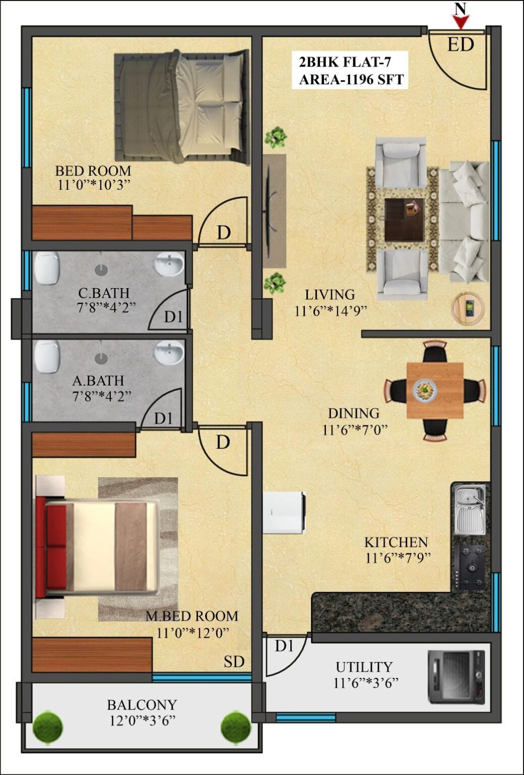 7 | 1196 Sft | North | 2 BHK |