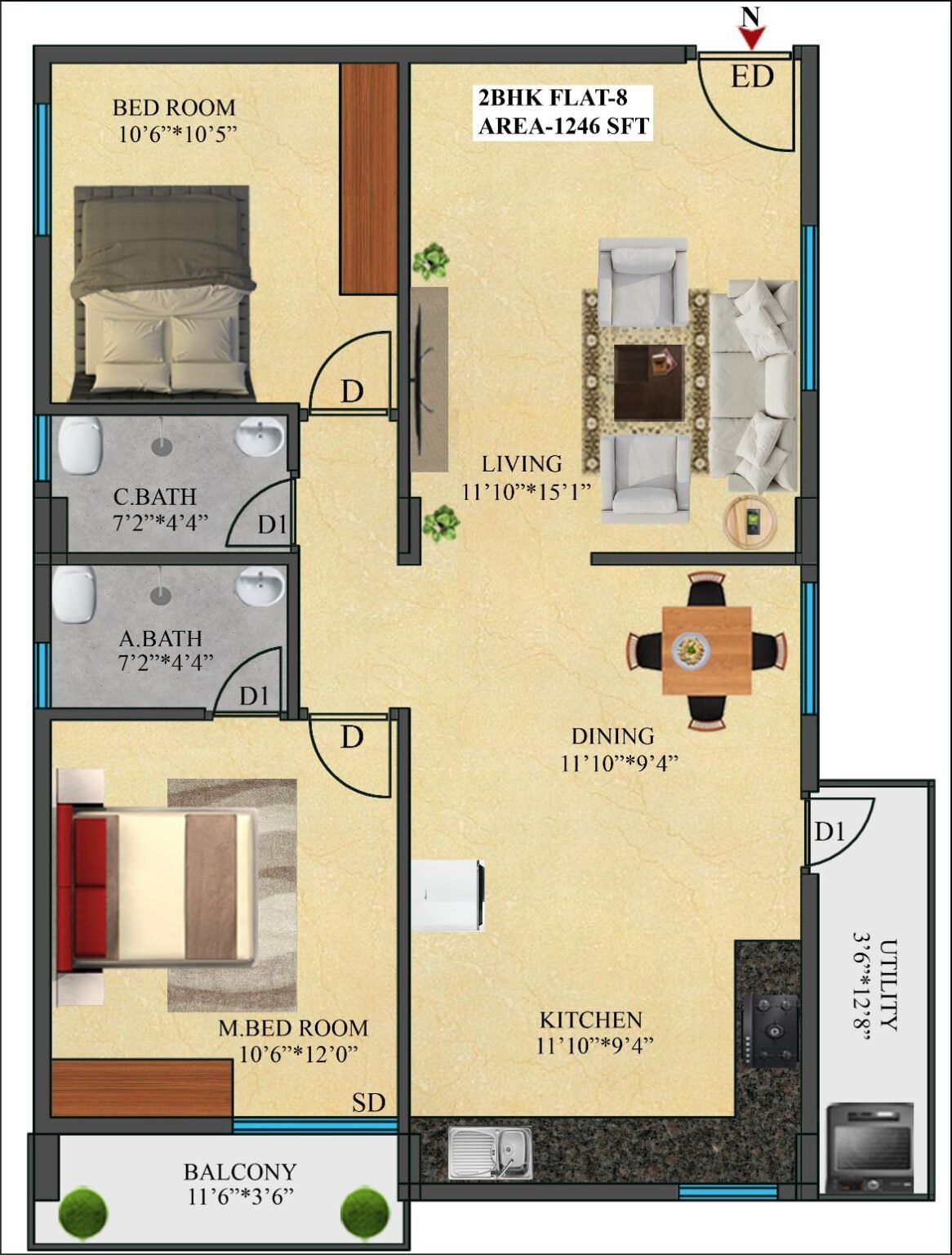 8 | 1246 Sft | North | 2 BHK |